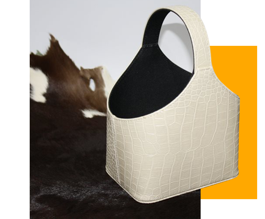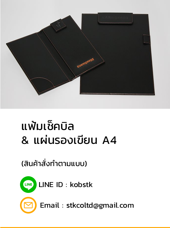 โรงงานผลิตสินค้าประเภทเครื่องหนังที่ทำมาจากหนังแท้ – หนังเทียม (PU, PVC) ผลิตตามแบบลูกค้า พร้อมประทับตราโลโก้ได้ตามความต้องการ สินค้าที่ทางบริษัทผลิตอาทิ แฟ้มเอกสาร, แฟ้มเมนูอาหาร – เครื่องดื่ม, แฟ้มภายในห้องพัก, แฟ้มเช็คบิล, แฟ้มส่งมอบคอนโด – บ้าน, แฟ้มซิปรอบ, แผ่นเช็คบิล, แผ่นรองเขียน, แผ่นรองจาน, กระเป๋าใส่ไวน์, ตระกร้า, Diary, Organizer และงานโครงไม้หุ้มหนังอาทิ กล่องทิชชู่, กล่องนาฬิกา, กล่องใส่พระ, กล่องใส่แว่น, กล่องมีฝา, ลิ้นชัก, กล่องทิชชู่, ถาดหนัง, ถาดกำมะหยี่ใส่เครื่องประดับ, ถังขยะ, ถังร่ม, เพื่อใช้ในกิจการโรงแรม รีสอร์ท ร้านอาหาร-เครื่องดื่ม ภัตตาคาร คอนโด บ้าน ตลอดจนสำนักงานออฟฟิศ ฯลฯ