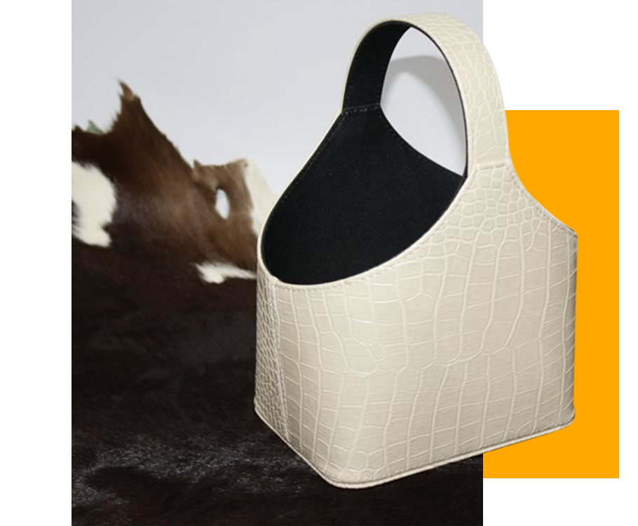 โรงงานผลิตสินค้าประเภทเครื่องหนังที่ทำมาจากหนังแท้ – หนังเทียม (PU, PVC) ผลิตตามแบบลูกค้า พร้อมประทับตราโลโก้ได้ตามความต้องการ สินค้าที่ทางบริษัทผลิตอาทิ แฟ้มเอกสาร, แฟ้มเมนูอาหาร – เครื่องดื่ม, แฟ้มภายในห้องพัก, แฟ้มเช็คบิล, แฟ้มส่งมอบคอนโด – บ้าน, แฟ้มซิปรอบ, แผ่นเช็คบิล, แผ่นรองเขียน, แผ่นรองจาน, กระเป๋าใส่ไวน์, ตระกร้า, Diary, Organizer และงานโครงไม้หุ้มหนังอาทิ กล่องทิชชู่, กล่องนาฬิกา, กล่องใส่พระ, กล่องใส่แว่น, กล่องมีฝา, ลิ้นชัก, กล่องทิชชู่, ถาดหนัง, ถาดกำมะหยี่ใส่เครื่องประดับ, ถังขยะ, ถังร่ม, เพื่อใช้ในกิจการโรงแรม รีสอร์ท ร้านอาหาร-เครื่องดื่ม ภัตตาคาร คอนโด บ้าน ตลอดจนสำนักงานออฟฟิศ ฯลฯ